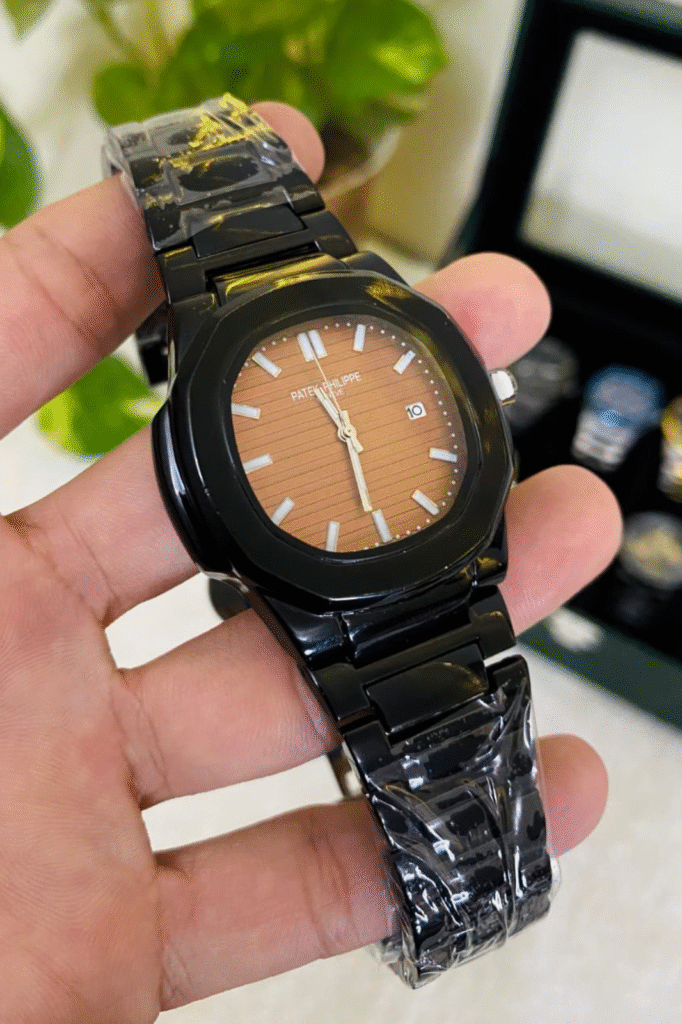 Introducing our Patek Philippe-inspired Nautilus luxury watch — a perfect blend of iconic design and modern craftsmanship, brought to you by Alpha Watches. Featuring a polished stainless steel strap, an eye-catching green bezel, and a deep blue textured dial, this timepiece captures the elegance and prestige of classic Swiss watchmaking. Available in Black colors, it’s ideal for both casual and formal occasions. Enjoy open-box delivery, warranty, and unmatched value with Alpha Watches.