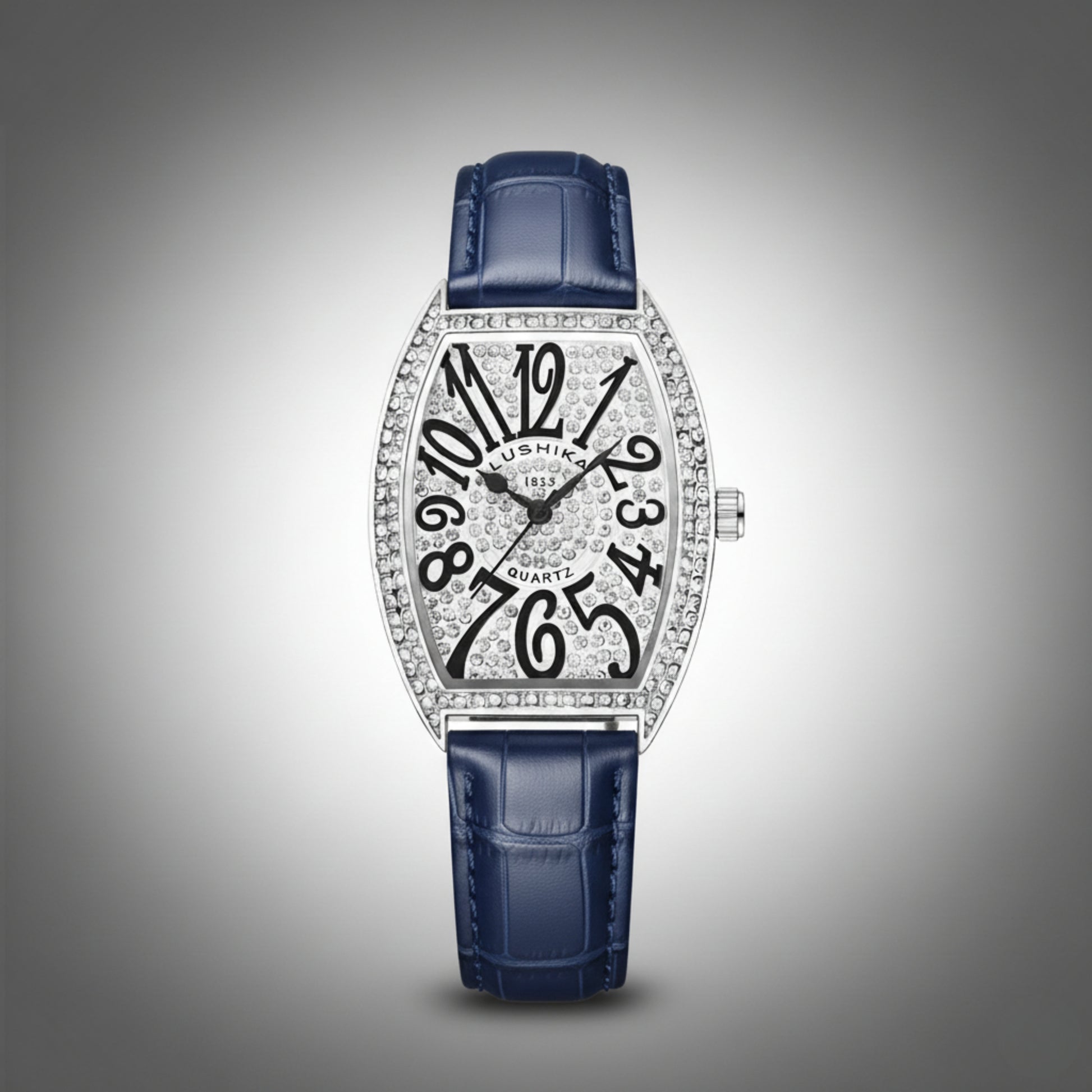 Add a sparkle of elegance to your look with the Alpha Lushika Diamond Dial Women’s Watch, a luxury-inspired timepiece designed for modern women. Featuring a glittering diamond-accented dial and premium strap options in Black, Red, Blue, and Green, this watch combines fashion and sophistication effortlessly. Crafted with durable stainless steel, quartz precision, and a chic, feminine design, it’s perfect for both daily wear and special occasions.