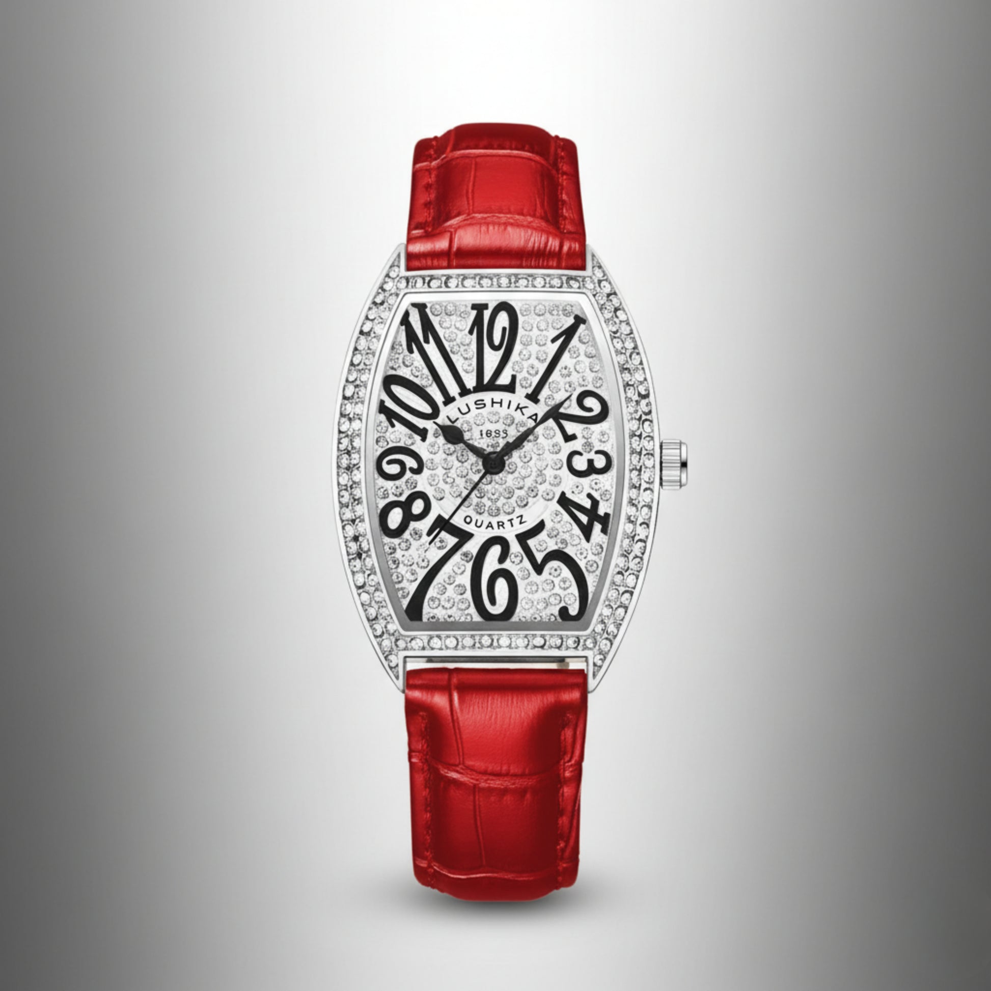 Luxury-Inspired Lushika Diamond Dial Women's Watch | Alpha Watches | Black , Red , Blue and Green Straps