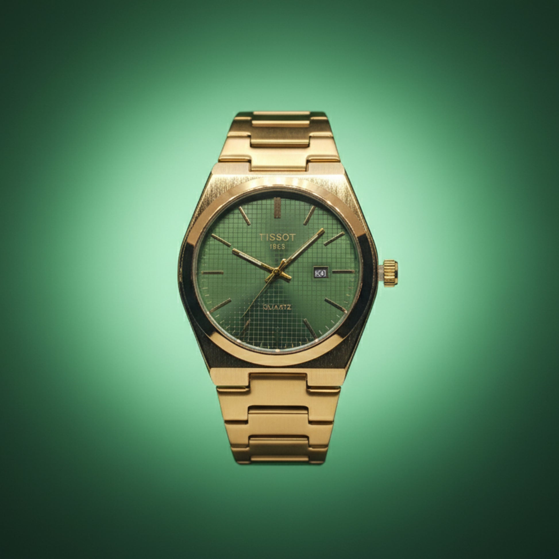 men’s gold luxury watch, Tissot-inspired stainless steel watch, premium quartz timepiece for men, luxury men’s wristwatch, gold-plated watch Pakistan, elegant men’s stainless steel watch, Tissot gold watch for me