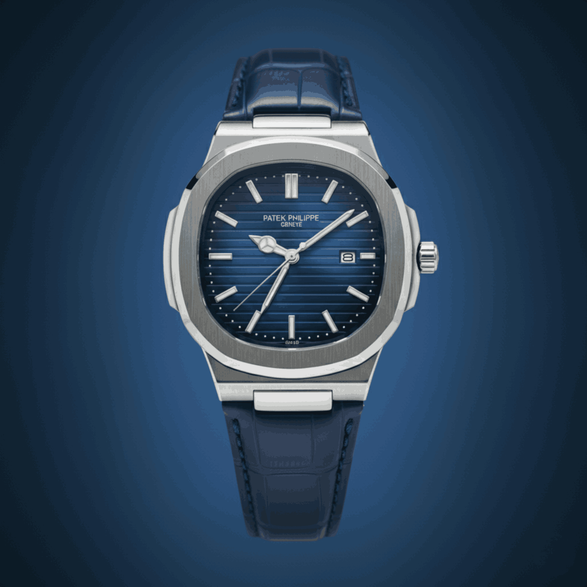 The Patek Royal Blue Edition captures timeless sophistication with its dark blue dial and matching leather strap. Inspired by the legendary Patek Philippe Nautilus, this watch blends luxury craftsmanship with everyday elegance. Its stainless steel case, date display, and refined texture make it the perfect choice for modern gentlemen who value class and precision.