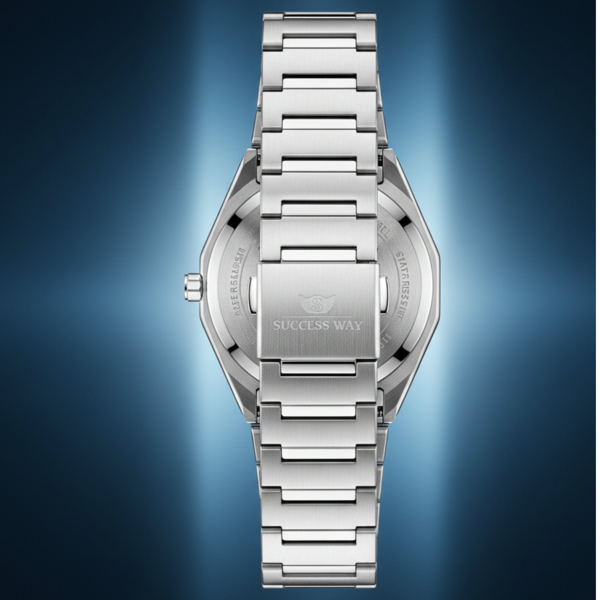 The SuccessWay Men’s Watch features a deep blue dial and silver stainless-steel body, blending luxury with confidence. Perfect for men who value sophistication, precision, and everyday elegance.